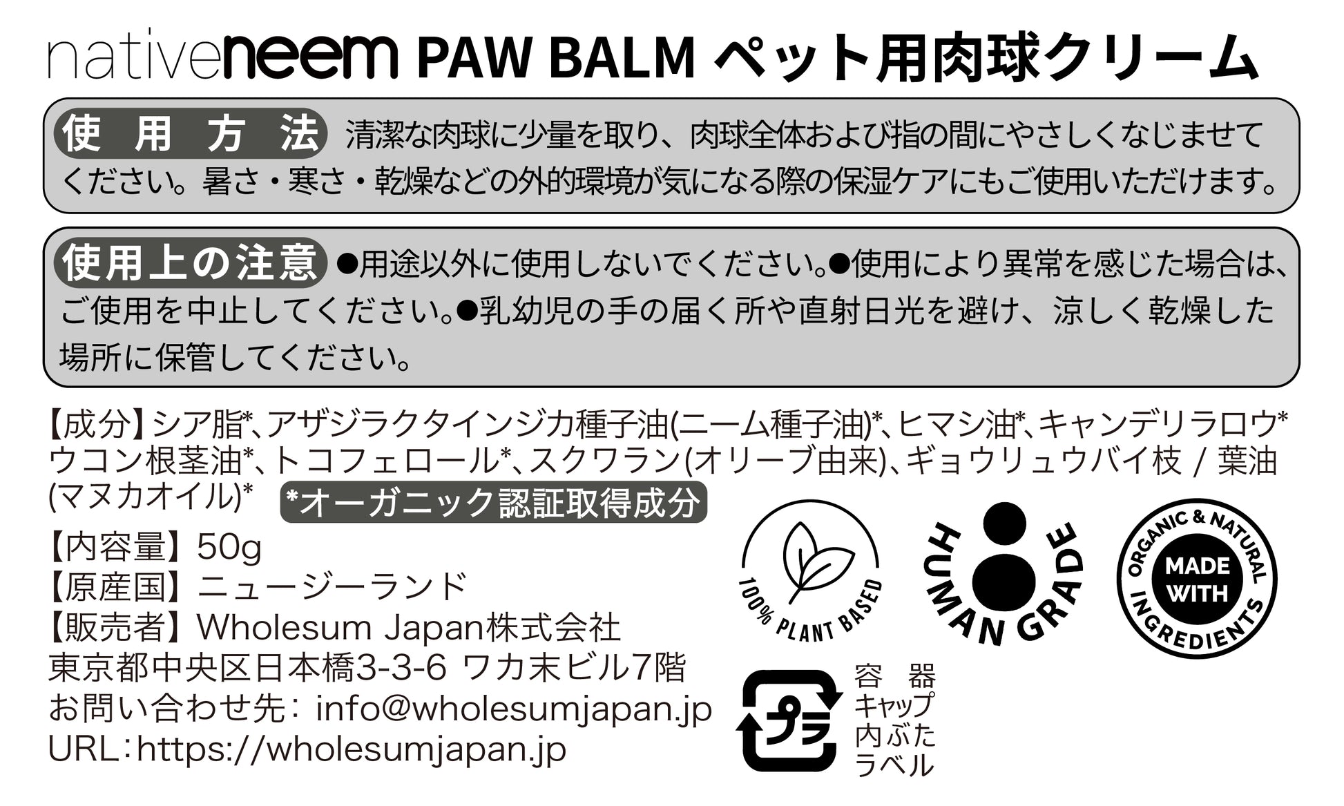 native neem(ネイティブニーム)ペット用肉球バーム 50g